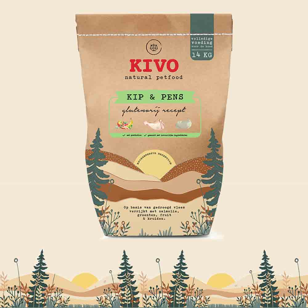 Kivo Kip & Pens koudgeperste brok in een zak van 14 kg! Voor moeilijke eters – Vrij van gluten, soja, suiker, zout & synthetische geur-, kleur en smaakstoffen.